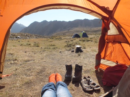 موقع برگشت این دو تا آقاپسر شیطون رو دیدیم که با باباشون اومده بودن کوه. بهشون سلام کردم و به دستگیرههای روی لباس سمت چپیه علاقه نشون دادم که گفت: "اینها که بهم وصله دستگیرههای کوهنوردی هستن" و در حالیکه حسابی فاز پُز دادن برداشته بود گفت: "توی مغازهها دنبالش نگردی که بخری ها! من خودم اینها رو اختراع کردم و ساختهام. خیلی توی کوهنوردی کاربرد داره!"